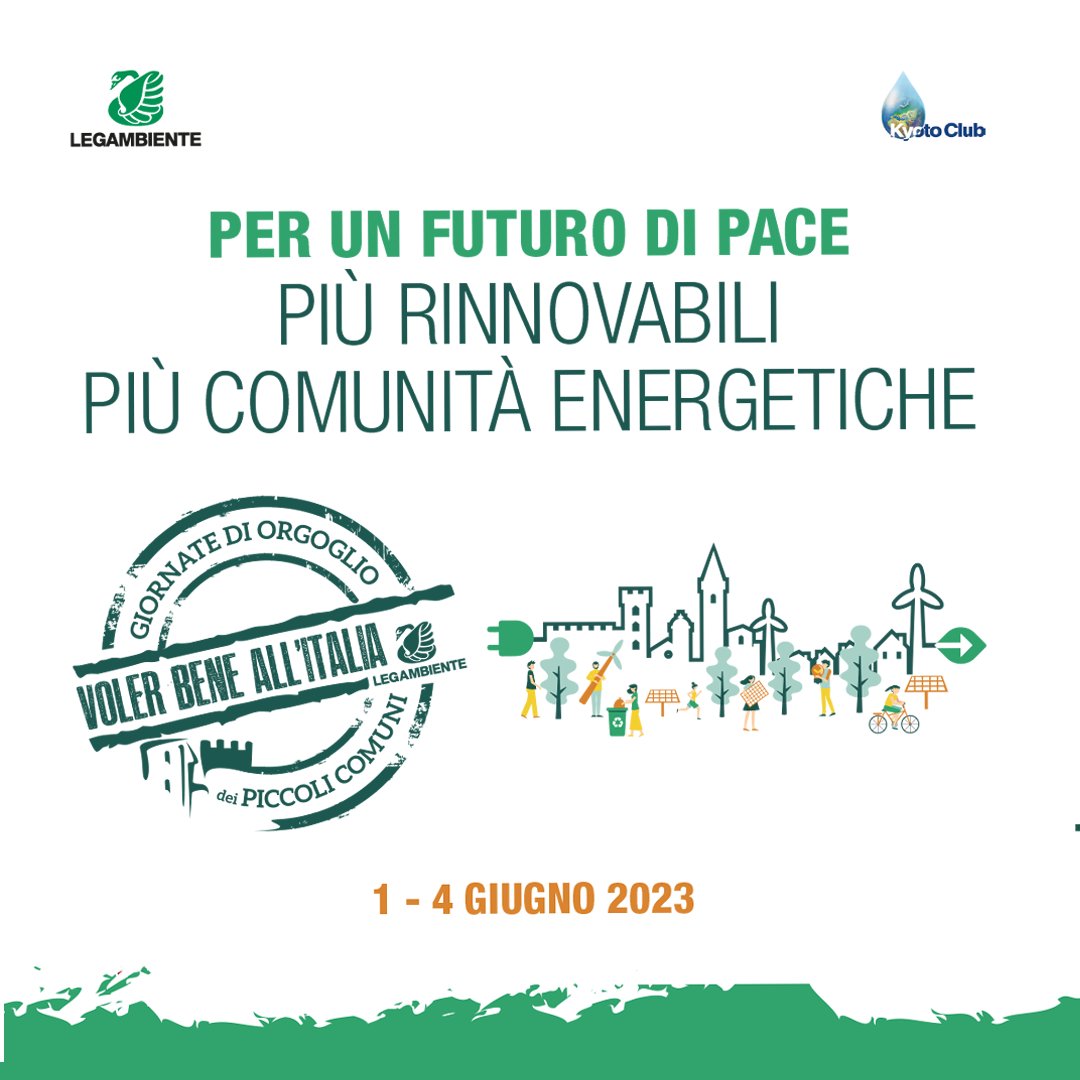 E’ il motto con cui Legambiente Onlus , insieme a Kyoto Club, AzzeroCO2, #EnelX, Symbola e un vasto comitato promotore, celebra i #PiccoliComuni italiani da oggi al 4 giugno. Borghi in festa per promuovere l’energia pulita, etica, democratica e condivisa. Nonostante i fondi messi a disposizione dal Pnrr per progettare e sviluppare le Comunità Energetiche Rinnovabili (Cer) e gli annunci del governo, il Paese aspetta ancora che sia emanato il decreto attuativo che le normerà. Per questo Voler bene all’Italia quest’anno è dedicata alle #Cer. Uno strumento strategico per aiutare il clima, sottrarsi al ricatto del gas, prendere le distanze dai tanti conflitti legati a interessi fossili e contribuire a un futuro di pace.