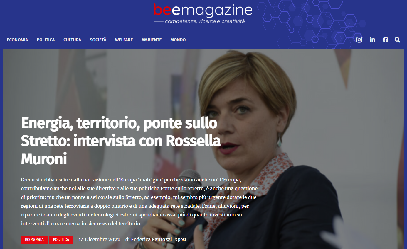 Nell’intervista parlo anche di sicurezza del territorio, comunità energetiche rinnovabili, Europa, legalità e buona occupazione, della necessità urgente di un Piano nazionale di adattamento ai mutamenti climatici, dell’importanza di sostenere la conversione green dei più importanti settori industriali italiani, come l’auto-motive, e dei nostri talenti, di cui dovremmo essere più consapevoli e che dovremmo imparare a valorizzare. .